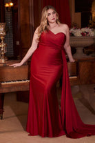 Fuchsia, Black, Slate Blue & Emerald One-Shoulder Plus Size Gown | Draped Satin Mermaid Dress CDPT004C