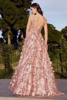 Glitter Floral Full Legth A-line Dress V-neck Backless Long Prom & Ball Dress
