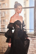 Strapless Removable Sleeves Off Shoulder Tulle Skirt Long Ball Dress