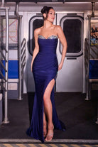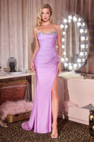 Strapless Stretch Satin Prom Dress w/ Delicate Leg Slit & Charming Sweetheart Neckline CDCD391