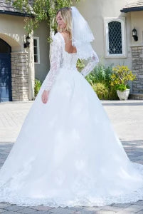 We understand that all brides seek to channel their inner goddess with their own sense of grace and elegance, and not all women share the same taste when it comes to fashion. Some brides like to keep their look classic and timeless, with an intricately embroidered ivory satin wedding ball gown with a floor grazing train, straight out of a Disney princess movie.