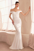 Romantic Off The Shoulder Solid Wedding Gown w/ Ruched Design & Zip Closure CDT402W
