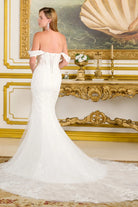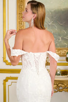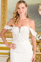 Formal Off White Wedding Gown w/ Floral Lace Applqiue & Long Sweep Train GLGL3713