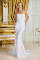Strapless Off White Solid Wedding Gown w/ Sweeping Train & Boned Bodice GLGL3717