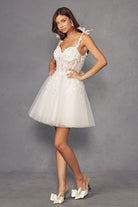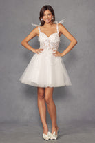 Off White Baby Doll Wedding Dress w/ Sheer Beaded Bodice & Flare Skirt JT972LW