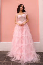 Turn heads in this stunning light blue corset tulle gown, designed for those who love fairy-tale elegance and modern glamour. Featuring a structured corset bodice with delicate embellishments, this dress highlights your feminine silhouette while offering exceptional support and comfort. The flowing A-line skirt, made of luxurious tiered tulle, adds volume, movement, and a dreamlike charm—perfect for prom, evening galas, weddings, or any special occasion.