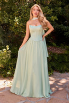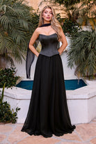Strapless Lightweight A-Line Chiffon Dress With Matching Scarf & Corset Bodice CDCD386