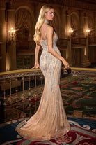 Stunning Mermaid Gown w/ Beaded Matching Choker & Floor Lenght Sweep Train CDCD719