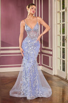 Beads Embellished Formal Mermaid Gown w/ Sheer Corset Bodice & V-Neckline CDCT264