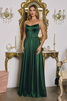 Soft Satin A-Line Solid Bridesmaid Dress w/ Corset Bodice & Detachable Straps CDT612