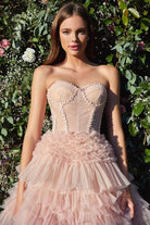 Corset Princessa Tulle Ruffle Strapless Long Ball Dress CDA1017