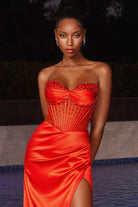 Strapless Sheath Night Out Soft Satin Gown w/ Beaded Corset Bodice & Gathered Waistline CDCD295