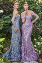 Dusk Glass Embellished Beads Matching Gloves Long Prom Dress CDA1163