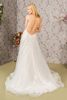 Embroidery Bead Sheer Bodice Open Back Mesh Long Wedding Dress GLGL3417