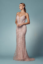 Glitter Deep V-Neck Bodice Trumpet Long Prom Dress NXR282-1