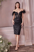 GLITTER PRINT COCKTAIL DRESS WITH FEATHER DETAILS CDJ829