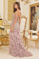 Ruffled Skirt Open Corset Back Mermaid Long Prom Dress