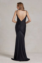 Cowl Neck Low Back Mermaid Open V-Back Long Evening Dress NXK490