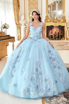 OFF THE SHOULDER FLORAL APPLIQUED BALL GOWN CD15713