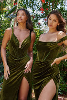 Velvet Wrap Effect Cowl Neck Off Shoulder Bodice Mermaid Long Prom & Bridesmaid Dress