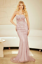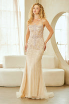 This head-turning gown delivers red carpet glamour with every wear. Adorned with detailed geometric beading and dazzling rhinestones, it sculpts an incredible hourglass silhouette. The bodice stuns with bold caged straps and a delicate sheer mesh panel, making it a fierce, viral sensation. Available in elegant Champagne, dreamy Sage, and rich Dark Mauve, this striking dress is a must-have for anyone looking to make a powerful statement at any formal event.