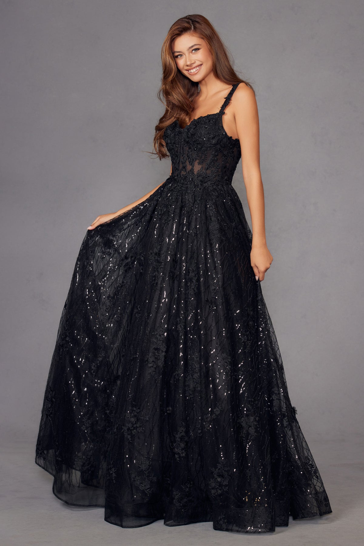 Elevate your evening wear with this stunning lace gown. This exquisite piece features a delicate floral lace overlay that exudes timeless elegance. The fitted corset with intricate lace patterns, transitions seamlessly into a full, floor-length gown. Designed with slender shoulder straps and a flattering neckline, this dress is perfect for those who seek both comfort and sophistication in their formal attire. Whether attending a gala, wedding, or prom, this red lace gown promises to make a memorable statement.