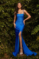 Rhinestone Stretch Satin Embellished Bodice Trumpet High Leg Slit Long Evening Dress CDKV1063