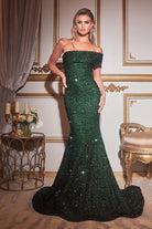 Sequin One Shoulder Mermaid Sparkling Straight Across Flattering Long Prom CDCD980