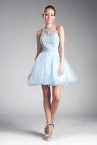 Get ready to steal the spotlight in our irresistible short A-line dress, perfect for your upcoming Damas or homecoming event! The layered tulle skirt boasts a playful wavy hem, adding a touch of fun and flair to your look. Up top, the embellished lace bodice features a chic high neckline, leading to a mesmerizing halter style that accentuates your shoulders beautifully. The open crisscross lace strappy back adds a daring twist, ensuring you turn heads from every angle. As one of our best sellers, this stunning dress is available in ten different colors, so you can choose the shade that best suits your style and personality. Get ready to dance the night away in style and confidence!