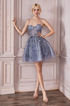 3D Floral Corset Tulle Mini Dress – Spaghetti Strap Sweetheart Short Party Dress CD9243