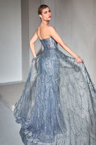 Beaded Corset Mermaid Gown with Detachable Overskirt – Strapless Formal Dress with Glitter Tulle CDCB095
